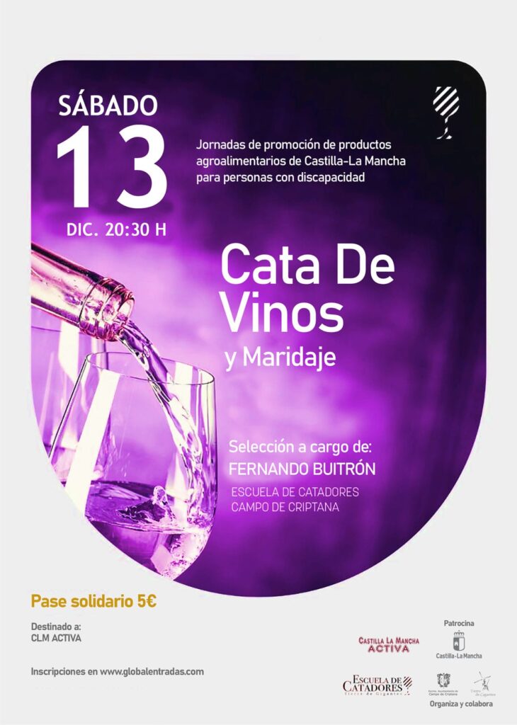 La Escuela de Catadores de Campo de Criptana acogerá una actividad muy especial: una cata de vinos y maridaje de productos agroalimentarios de Castilla-La Mancha, a cargo de Fernando Buitrón. Organizada en el marco de las Jornadas Culinarias de Promoción de Productos Agroalimentarios de Castilla-La Mancha. El evento está dirigido a personas con discapacidad, con el propósito de fomentar la inclusión y acercar la riqueza gastronómica de nuestra tierra a todos los públicos.