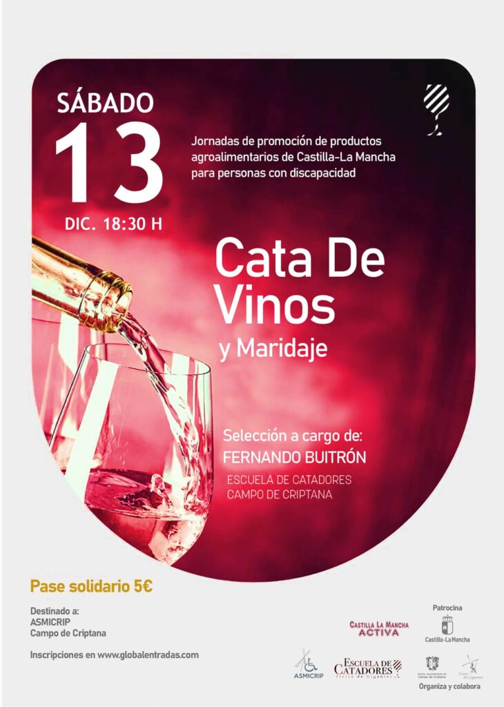 La Escuela de Catadores de Campo de Criptana acogerá una actividad muy especial: una cata de vinos y maridaje de productos agroalimentarios de Castilla-La Mancha a cargo de Fernando Buitrón. Organizada en el marco de las Jornadas Culinarias de Promoción de Productos Agroalimentarios de Castilla-La Mancha. El evento está dirigido a personas con discapacidad, con el propósito de fomentar la inclusión y acercar la riqueza gastronómica de nuestra tierra a todos los públicos.