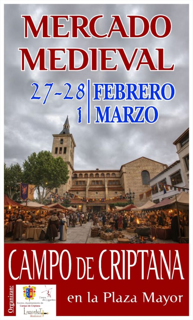 Los días 27, 28 de febrero y 1 de marzo, ven a disfrutar del Mercado Medieval en la Plaza Mayor de Campo de Criptana. Un evento único donde podrás sumergirte en la época medieval con puestos de artesanía tradicional, gastronomía típica, actividades para toda la familia, ubicado como en años anteriores en la Plaza Mayor
