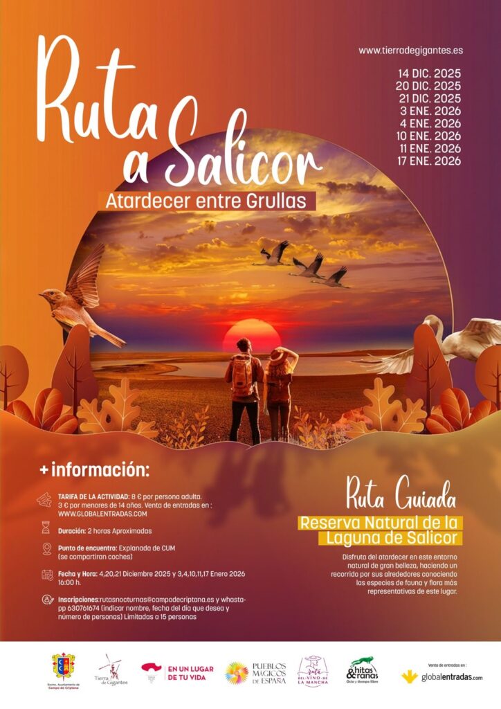 La Laguna de Salicor se encuentra a unos 10 km al norte de Campo de Criptana, por lo que el desplazamiento hasta la zona se realiza en vehículos compartidos. El recorrido no entra directamente en la laguna para garantizar su protección, sino que se lleva a cabo desde los alrededores y desde un punto elevado en la zona norte, que ofrece una excelente panorámica del entorno.