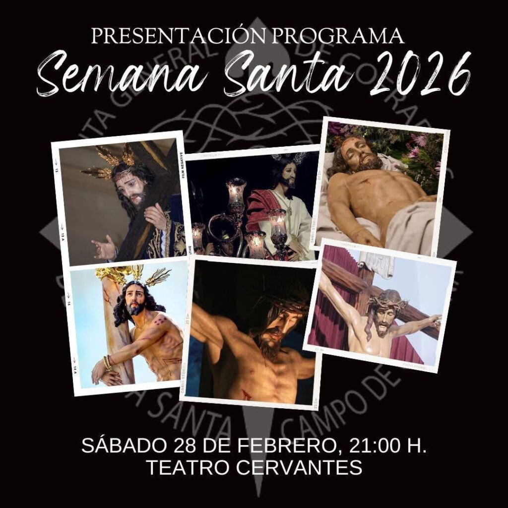 Sábado 28 de febrero a las 21:00h en el Teatro Cervantes, presentación del programa de cultos de Semana Santa 2026.